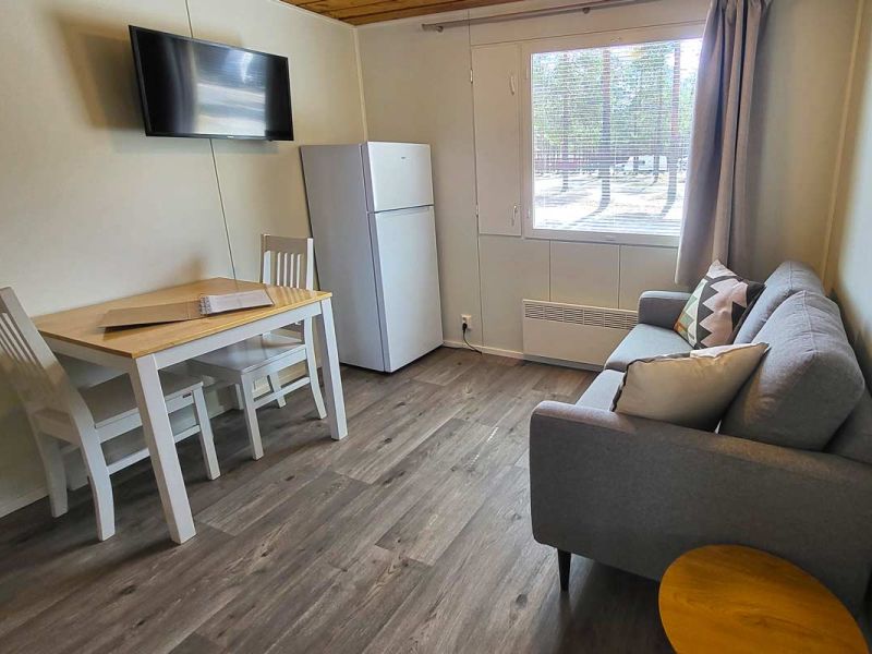 The cabin (24m2) is ideal for two people and can be used all year round. The kitchenette has a fridge, cooker, microwave, coffee maker, toaster, kettle, crockery and cooking utensils. The cottage also has a TV, shower and toilet. The bedroom has a double bed. Renovated in spring 2024.